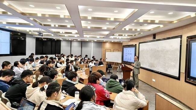 2025年9月,“会计学+人工智能”“财务管理+人工智能”双学士学位项目启动,50名本科生参与管理学院、信息学院跨学科联合培养。图为“问道·数智未来”系列讲座第一场