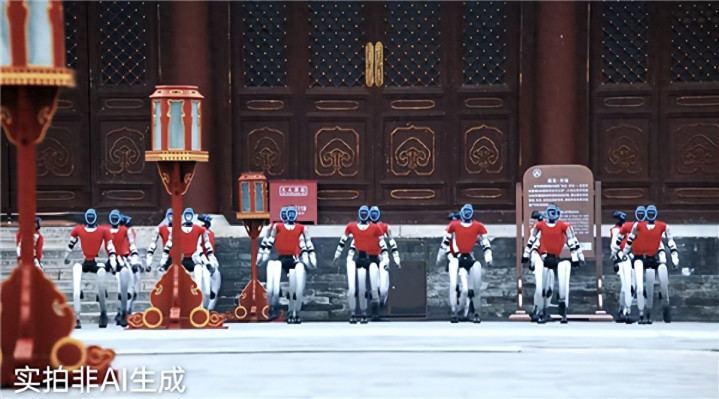 视频显示,宇树G1机器人们身披红袍,阵型整齐划一,一招一式尽显中华武术的精气神,还复刻了春晚同款动作,最后以抱拳收尾,堪比科幻大片,视频中特别标注“实拍非AI生成”。